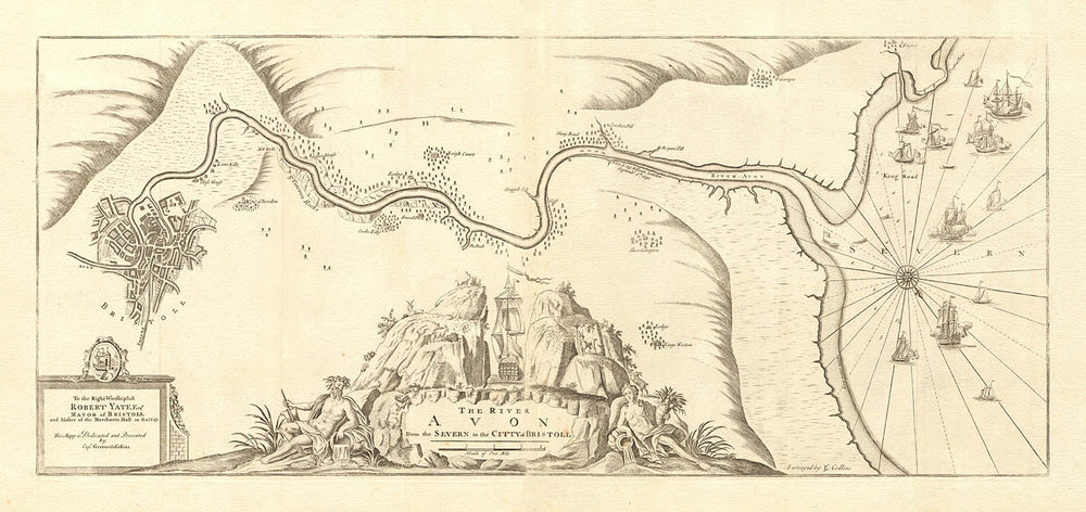 Historiquement, cette carte offre une fenêtre fascinante sur un moment clé de l'histoire britannique. Elle marque l'endroit même où le roi Guillaume III a atterri à son retour d'Irlande en 1690, un événement clé de la guerre de Williamite qui a façonné le destin des îles britanniques. La représentation détaillée de l'Avon Gorge, une merveille naturelle sculptée dans des falaises de calcaire, et de la ville portuaire animée de Bristol, alors l'un des principaux centres de commerce d'Angleterre, situe le spectateur à la croisée des chemins entre commerce, conflit et beauté naturelle. Les régions environnantes du Gloucestershire et du Somerset, dont les limites sont subtilement indiquées, ancrent encore plus la carte dans son riche contexte géographique.
