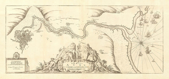 Le capitaine Greenvile Collins, le créateur de la carte, est une figure emblématique de l'histoire de l'hydrographie anglaise. Commandé par le roi Charles II et soutenu par le légendaire Samuel Pepys, Collins a été chargé de la tâche monumentale de cartographier les côtes de la Grande-Bretagne. Son travail a culminé dans le célèbre "Pilote côtier de Grande-Bretagne," le premier atlas maritime original produit par un Anglais. Les enquêtes méticuleuses de Collins, réalisées sous les auspices de Trinity House et à bord de yachts royaux, ont établi une nouvelle norme pour la précision et le détail, transformant la cartographie nautique britannique et garantissant un passage plus sûr pour des générations de marins.