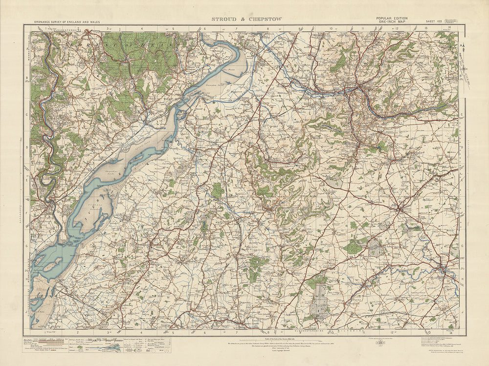 Carte Old Ordnance Survey, feuille 103: Stroud & Chepstow, 1925 : Lydney, Thornbury, Coleford, Dursley, Cotswolds AONB