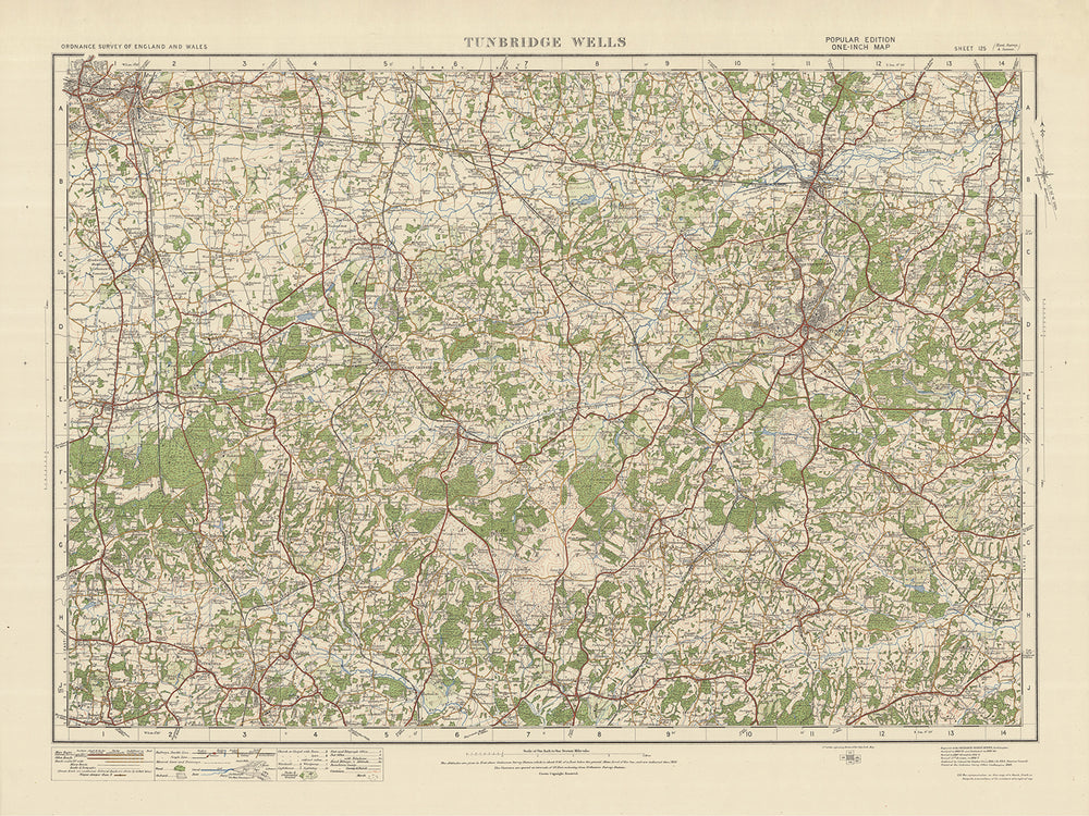 Carte Old Ordnance Survey, feuille 125: Tunbridge Wells, 1925 : Redhill, Tonbridge, Haywards Heath, Crawley et High Weald AONB