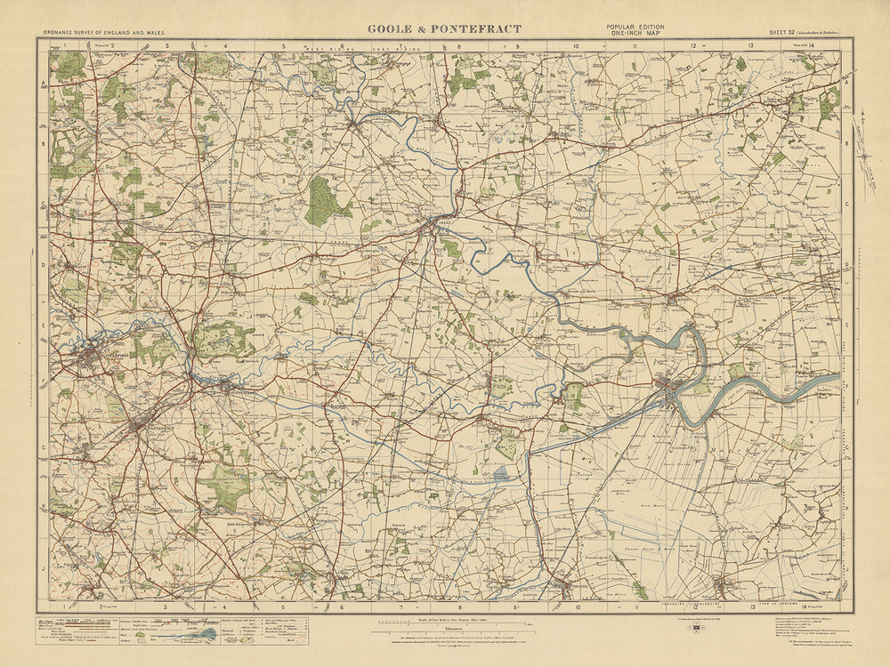 Ancienne carte de l'Ordnance Survey, feuille 32: Goole & Pontefract, 1925 : Castleford, Knottingley, Selby, Howden, Snaith
