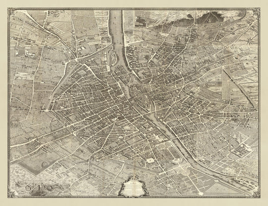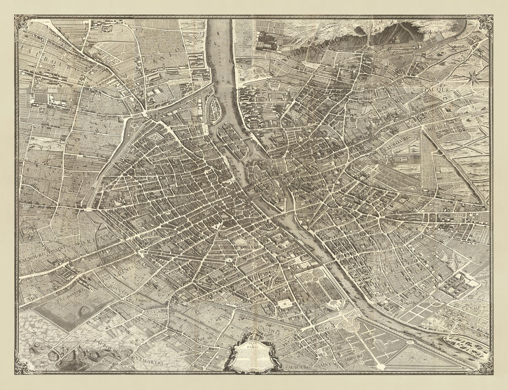 Considérée comme la plus grande, la plus fine, la plus détaillée et la plus rare des anciennes cartes de Paris, ce chef-d'œuvre a été réalisé par Louis Bretez en 1734, sur commande du Maire de Paris de l'époque, Michel-Étienne Turgot.