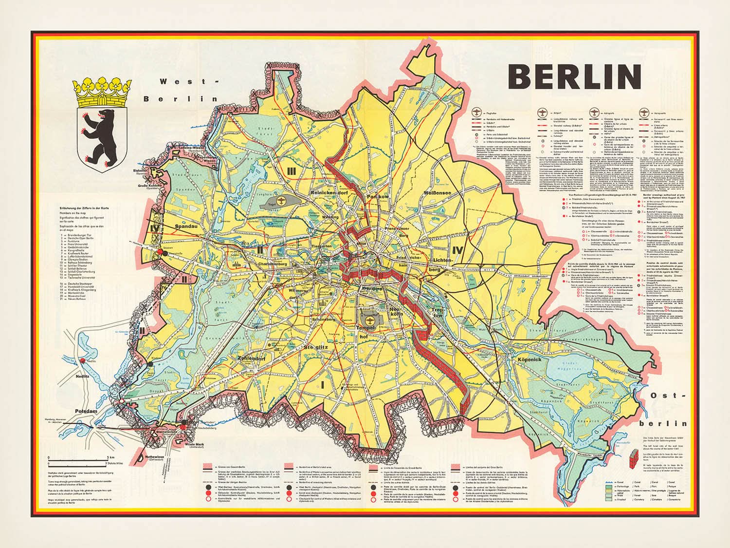 Ancienne carte de Berlin, 1963: Construction du mur de Berlin, Guerre froide, Porte de Brandebourg