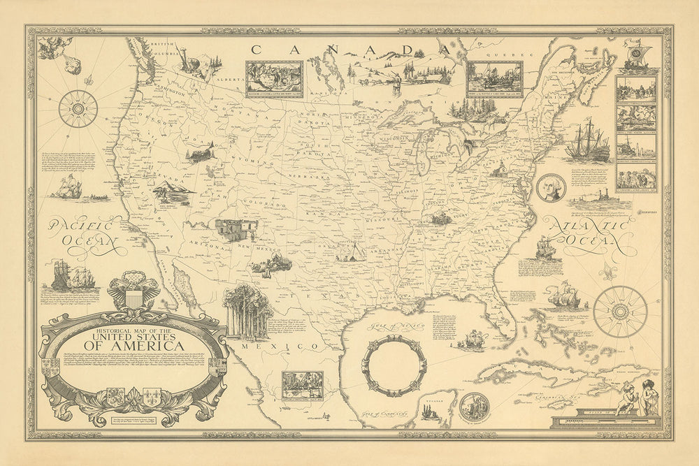 - La carte reflète la compréhension historique et l’interprétation artistique des États-Unis au début du XXe siècle.