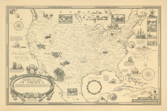 Ancienne carte picturale des États-Unis par Clegg, 1926