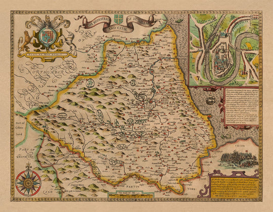 Ancienne carte du comté Durham, 1611 par John Speed - Darlington, Stockton-On-Tees, Sunderland