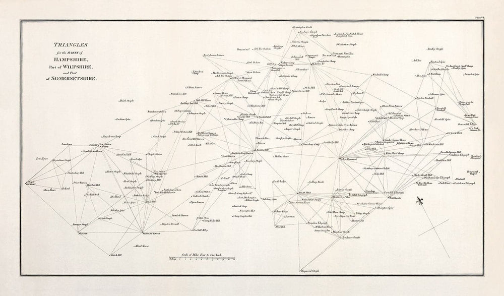 Ancienne carte de Hampshire, 1811: Première triangulation Ordnance Article