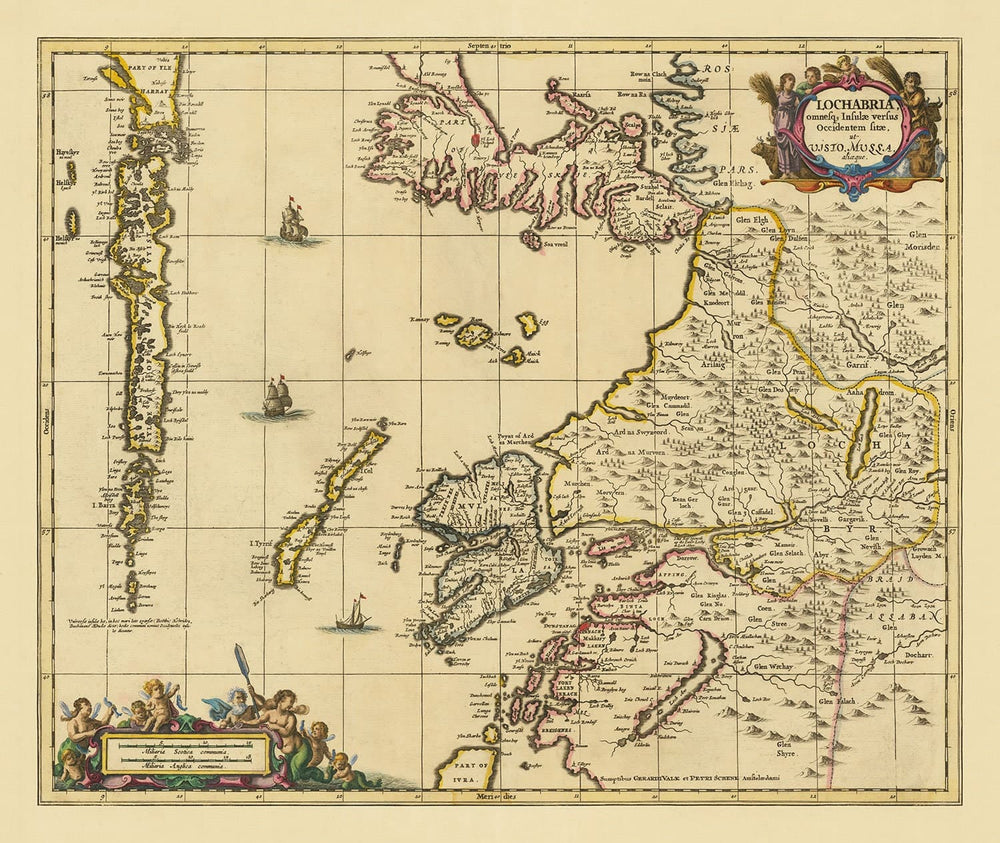 Ancienne carte des Hébrides intérieures et extérieures, Mull et Skye, 1690: Lochaber, Uist, Harris, Barra, Îles, Lochs