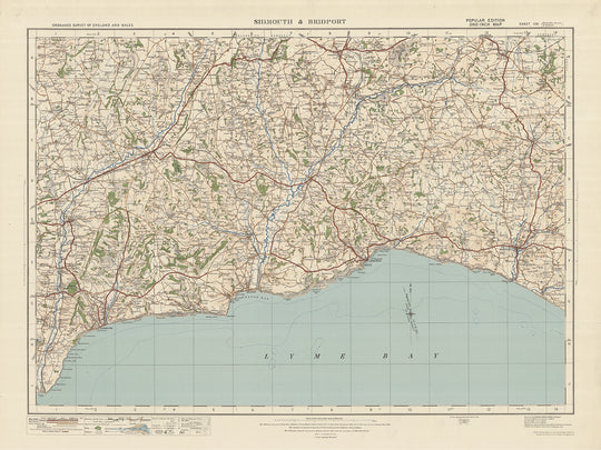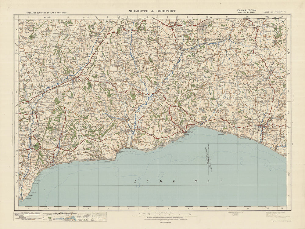 Carte Old Ordnance Survey, feuille 139: Sidmouth & Bridport, 1925 : Seaton, Honiton, Lyme Regis, Axminster, East Devon AONB