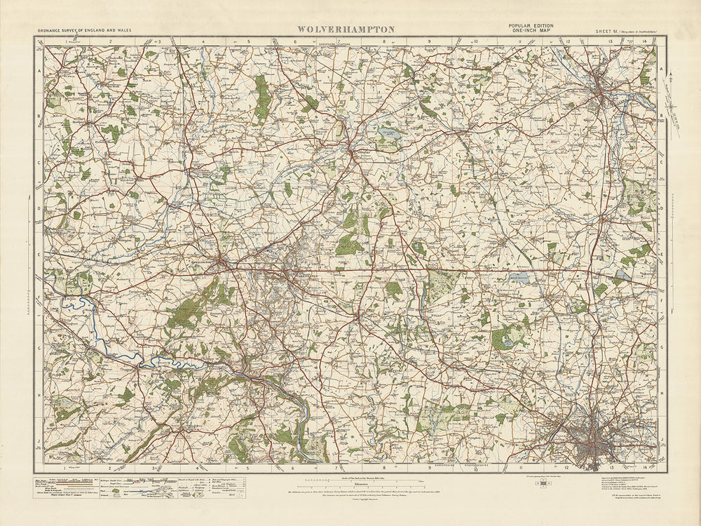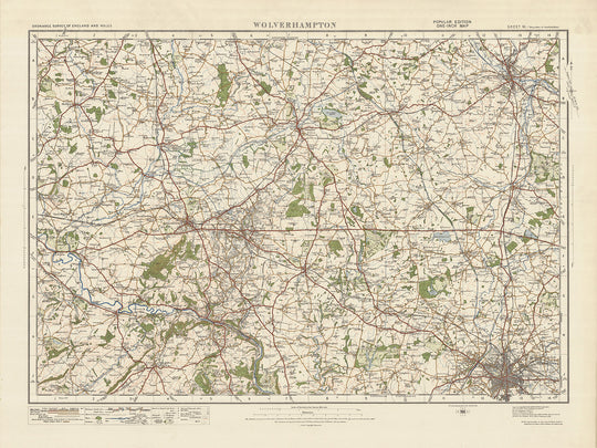 La carte Old Ordnance Survey, feuille 61 - Wolverhampton, 1925, est un morceau fascinant de l'histoire cartographique qui offre un aperçu du passé. Cette carte, qui fait partie de l'édition « Populaire » d'un pouce pour l'Angleterre et le Pays de Galles, fournit une représentation détaillée de la région de Wolverhampton et de ses environs au début du XXe siècle.