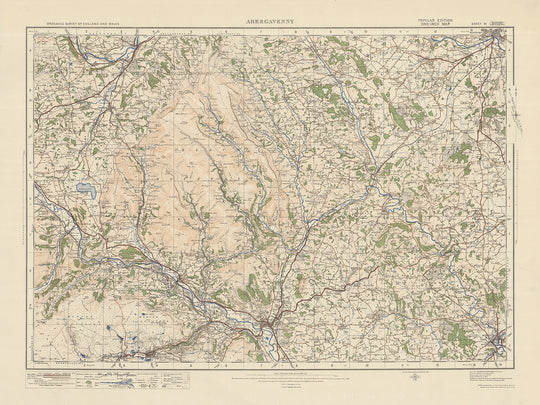 Carte Old Ordnance Survey, feuille 91: Abergavenny, 1925 : Crickhowell, Hereford, Brynmawr, Monmouth, parc national Bannau Brycheiniog