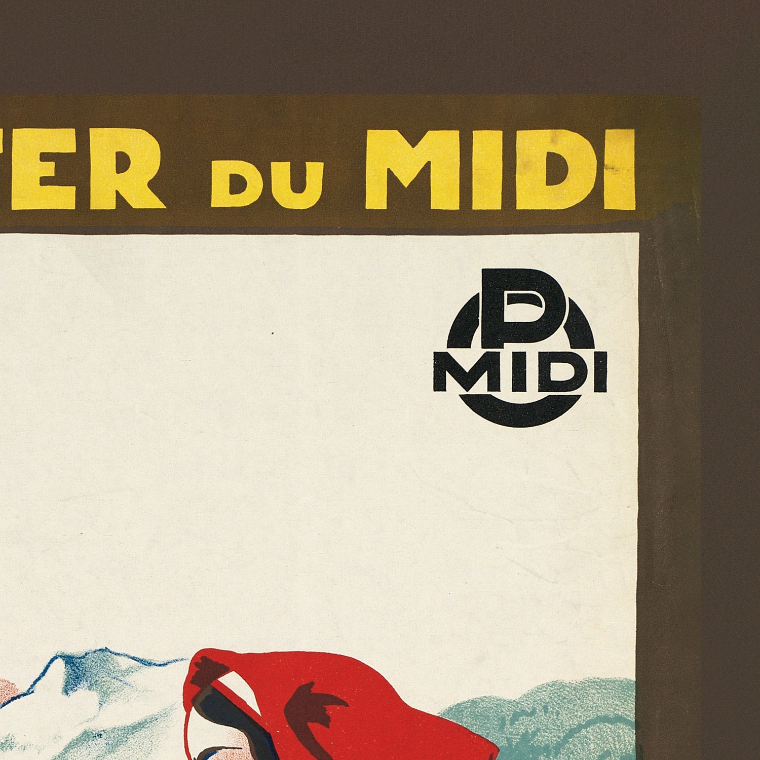 About the artist: While biographical records for M. Colas are scarce, he is known as a French posterist active around the late 1920s and early 1930s. His work for regional rail and tourism campaigns in southwest France favors crisp silhouettes, confident figure drawing, and lithographic washes that feel both modern and folkloric—perfectly suited to selling the romance of the mountains to city travelers.