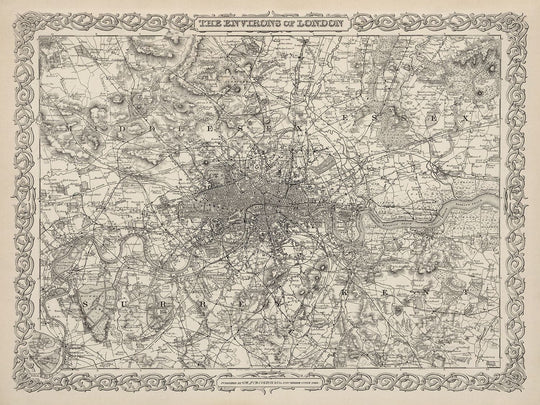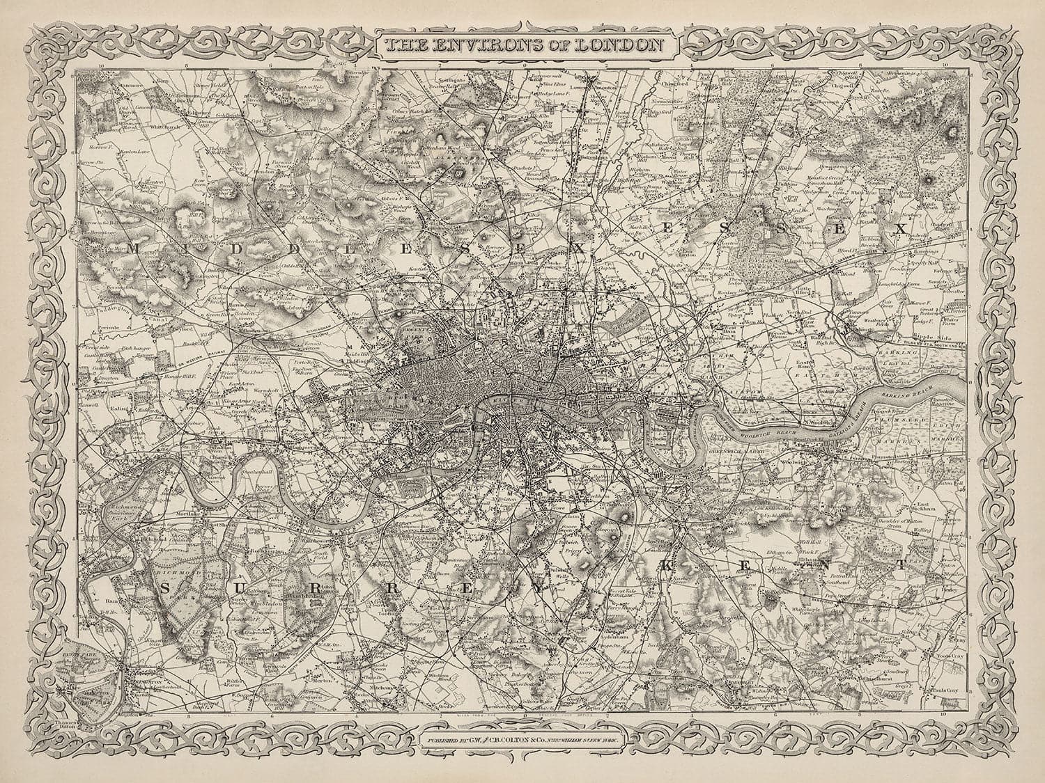 Ancienne carte de Londres et des environs, Environs par G.W. Colton, 1886
