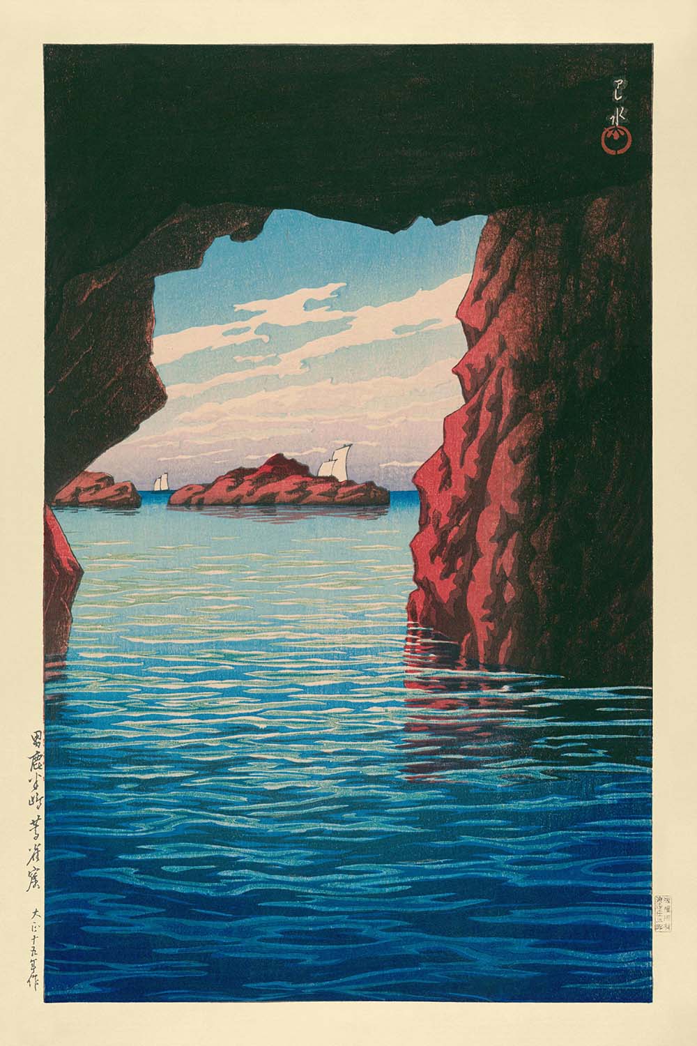 Caverne de Kojaku à la péninsule d'Oga par Hasui Kawase, 1935