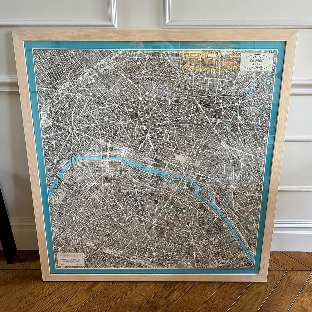 Le « Plan de Paris à Vol d'Oiseau » de Blondel La Rougery n'est pas simplement un outil de navigation mais une œuvre d'art qui résume l'essence de Paris. Le style artistique de la carte, alliant précision et attrait esthétique, offre une représentation intemporelle des rues, boulevards et berges de la ville. Il constitue un pont entre le passé et le présent, capturant le pouls d'une ville qui a longtemps été un lien entre la culture, l'histoire et l'art. Pour les collectionneurs et les admirateurs de Paris, cette carte est un trésor qui transporte le spectateur à travers les avenues du temps, offrant un voyage sans précédent à travers le paysage historique de la ville.