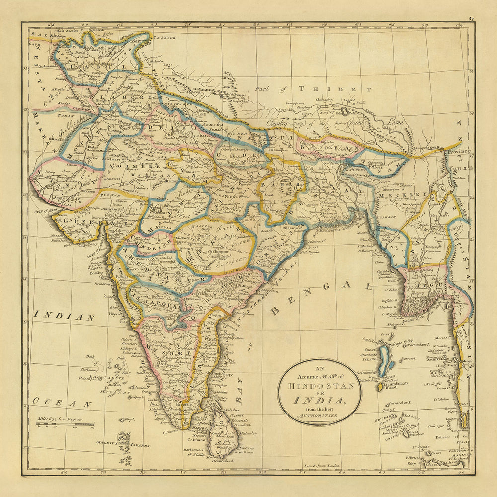 La carte de Carey est particulièrement notable pour sa représentation de l'Inde, qui était l'une des premières de son genre à être imprimée en Amérique. La carte offre une vue détaillée des villes, des villages et des régions du pays, ainsi que de ses phénomènes naturels et de ses points de repère. Elle donne également un aperçu du contexte historique de l'époque, offrant une perspective unique sur les changements politiques et géographiques de la région au début du XIXe siècle.