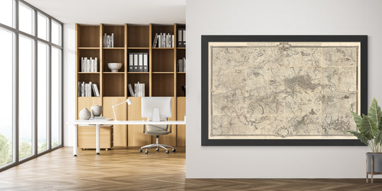 La plupart des cartes, œuvres d'art et illustrations sont également disponibles sous forme de toile encadrée. Nous utilisons une toile en coton mate (non brillante), que nous tendons sur un cadre en bois de boîte provenant de sources durables, puis nous 'flottions' la pièce à l'intérieur d'un cadre en bois. Le résultat final est assez beau, et il n'y a pas de vitrage qui gêne.