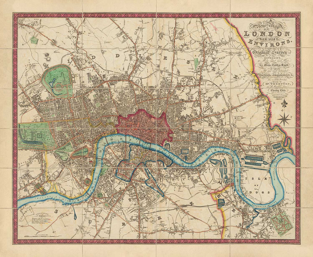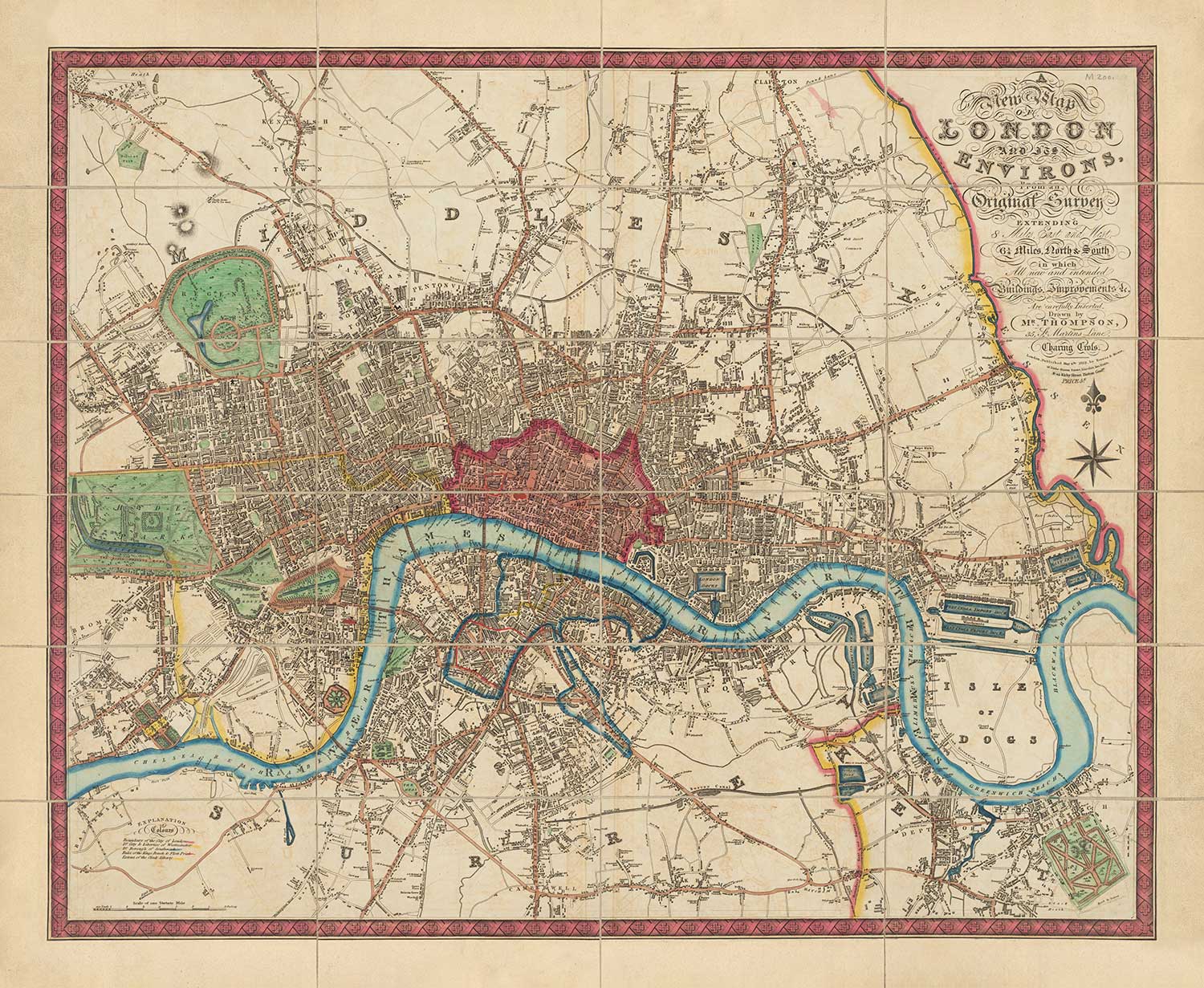 Cette merveilleuse vieille carte de Londres a été publiée à l'origine en 1822. Elle a été créée par Thompson.
