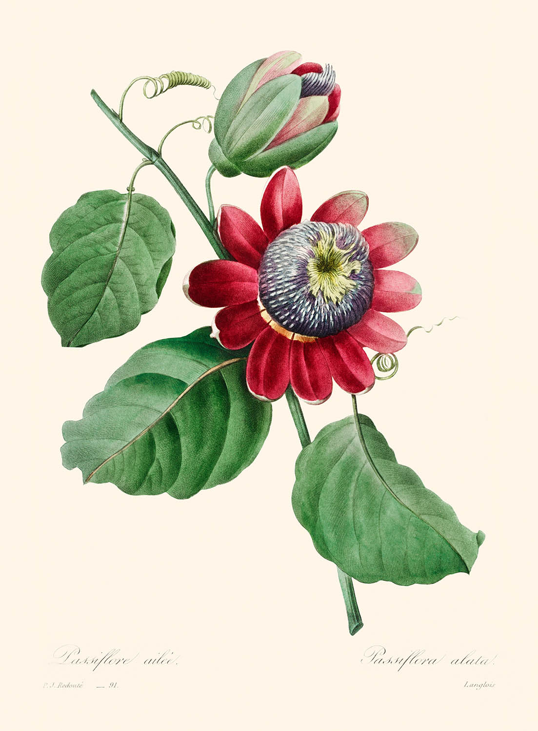 Illustration botanique de Passiflore Ailee par Pierre-Joseph Redouté, 1827