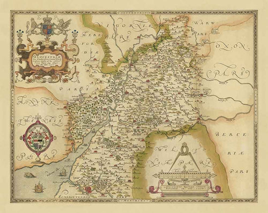 En 1575, le Gloucestershire était un peu plus grand. Aujourd'hui, le South Gloucestershire et Bristol ont été séparés, et certaines des étendues nord sont devenues le Warwickshire.