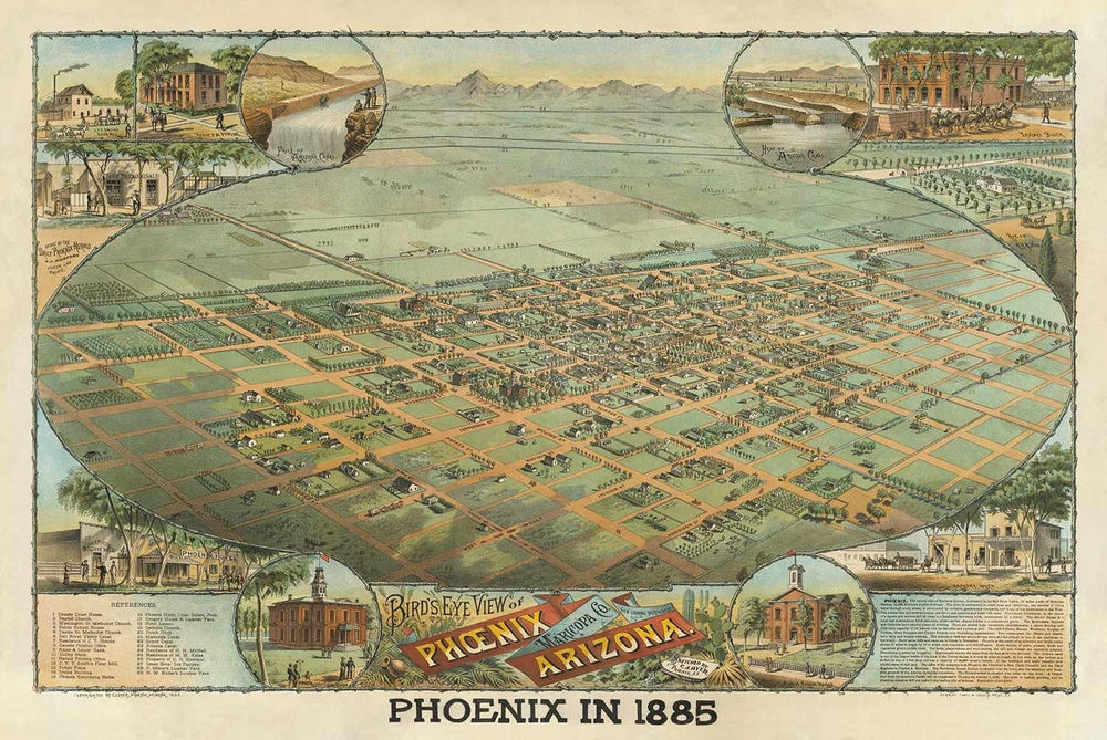 L'oeil de cette carte se trouve quelque part à peu près au-dessus du quartier des entrepôts, regardant le nord-est à travers ce qui est maintenant au centre-ville de Phoenix.