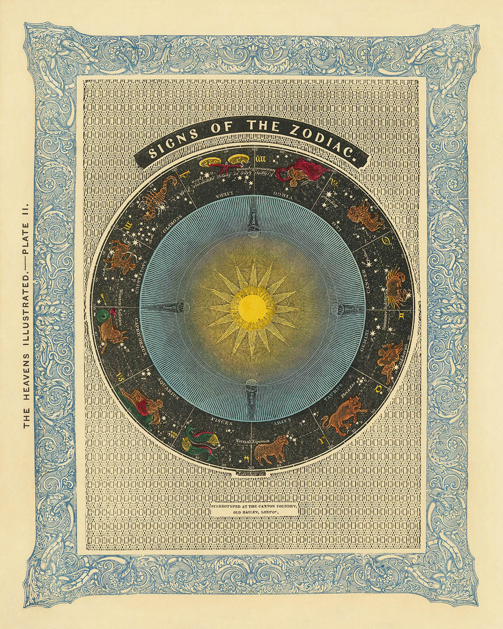 Et maintenant, pour la première fois depuis près de 200 ans, vous pouvez posséder une impression d'art unique et personnalisée des « Signes du zodiaque ». Votre impression sera méticuleusement restaurée et réalisée dans l'atelier de The Unique Maps Co., puis imprimée sur un papier mat d'archives luxueusement épais qui reste vibrant et sans tache pendant des décennies.