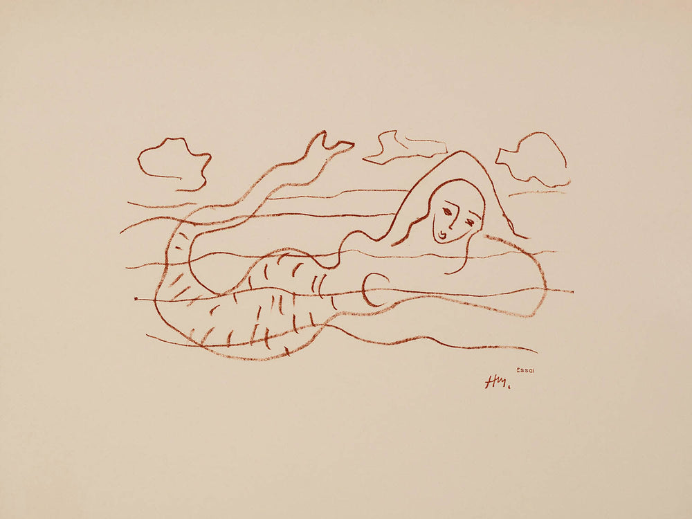 "Sirènes" se dresse comme un témoignage de la suprématie de Matisse en tant que coloriste et de sa fascination pour le monde naturel, donnant vie à des sirènes mythiques sur fond d'un jeu de beige, de marron et de nuances côtières rêveuses. Les lignes élégamment fluides de la peinture et l'utilisation harmonieuse de la couleur illustrent l'art unique de Matisse et attirent les spectateurs dans un récit enchanteur.