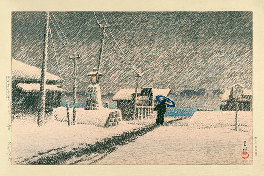 Tempête de neige à Tsukishima par Hasui Kawase, 1935