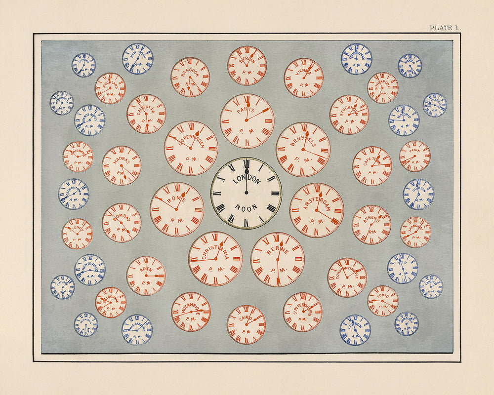Horloges des fuseaux horaires autour du monde par AK Johnston, 1906