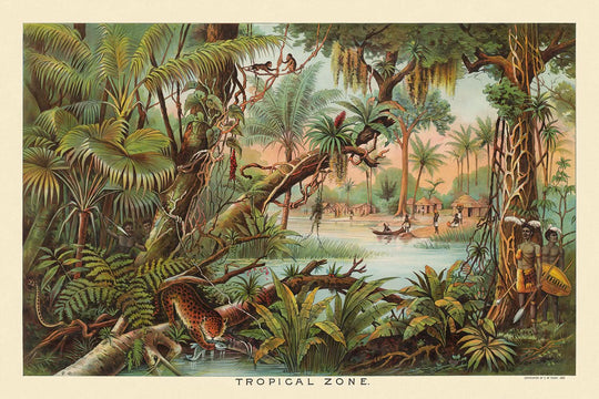 La Zone tropicale est remarquable non seulement pour son objectif éducatif, mais aussi pour sa valeur artistique. Les contrastes de couleurs et les détails obtenus grâce à la chromolithographie dans l'œuvre de Yaggy sont extraordinaires, offrant à la fois un plaisir esthétique et un engagement intellectuel. Les visuels complexes entraînent les spectateurs dans un monde d'exploration et de compréhension, faisant de cette estampe un ajout enrichissant à toute collection.