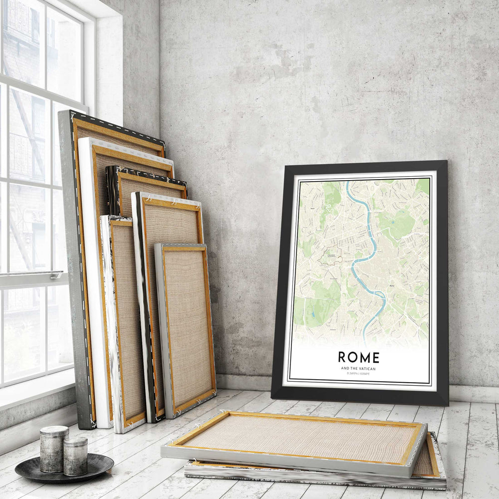 This map is also available as a float framed canvas, sometimes known as a shadow gap framed canvas or canvas floater. The map is printed on artist's cotton canvas and then stretched over a handmade box frame. We then "float" the canvas inside a wooden frame, which is available in a range of colours (black, dark brown, oak, antique gold and white). This is a wonderful way to present a map without glazing in front. See some examples of float framed canvas maps and explore the differences between my different finishes.