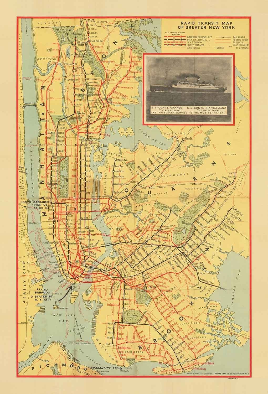La carte était en fait une promotion pour quelques navires transatlantiques rapides avec "Service de passagers rapides vers la Méditerranée", le SS Conte Grande et le SS Conte Biangamano.