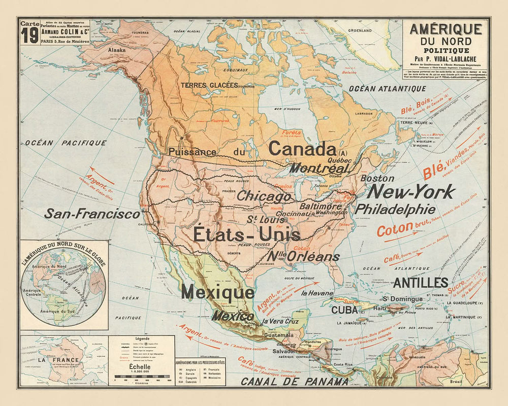 - Un encart plus petit montrant "L'Amérique du Nord sur le globe".