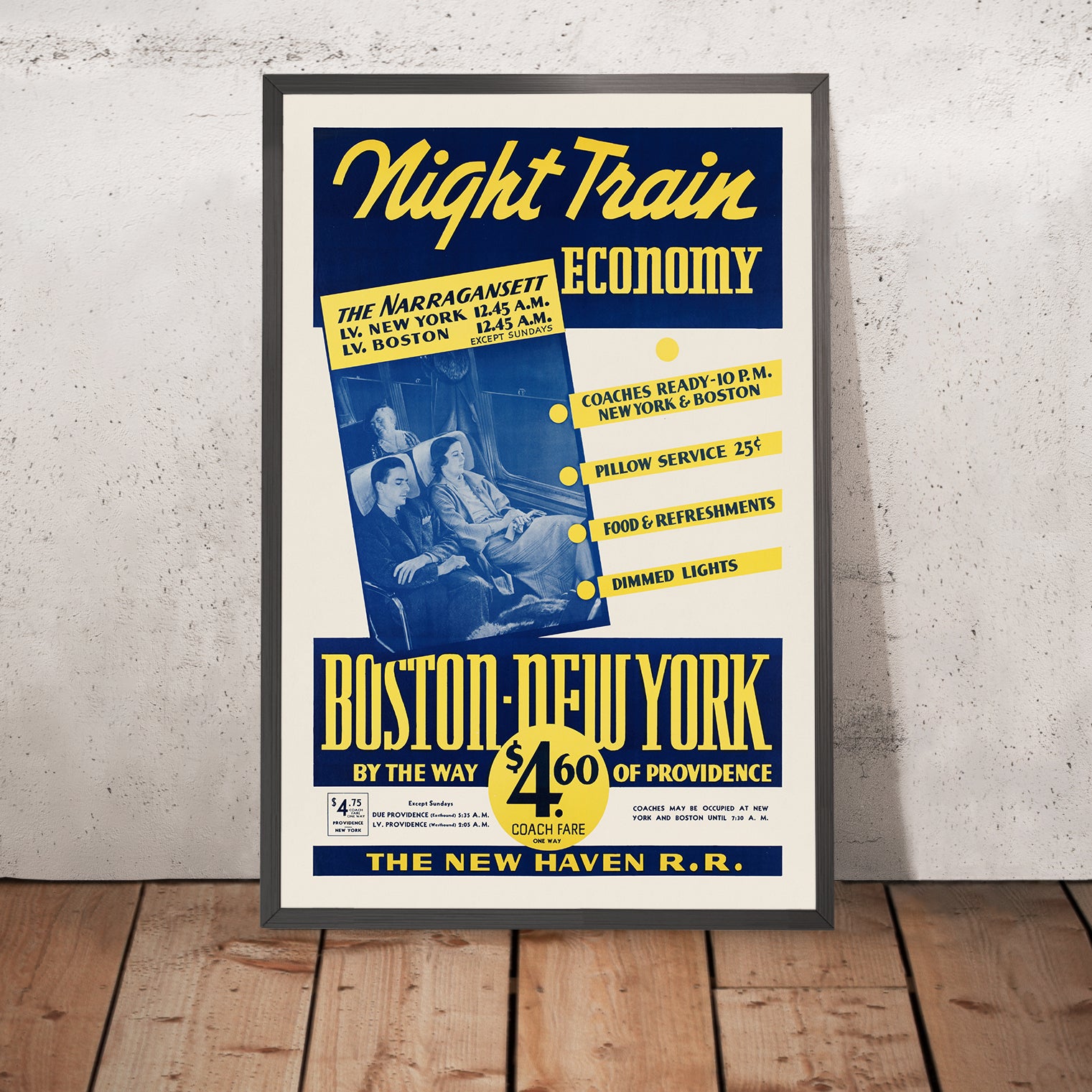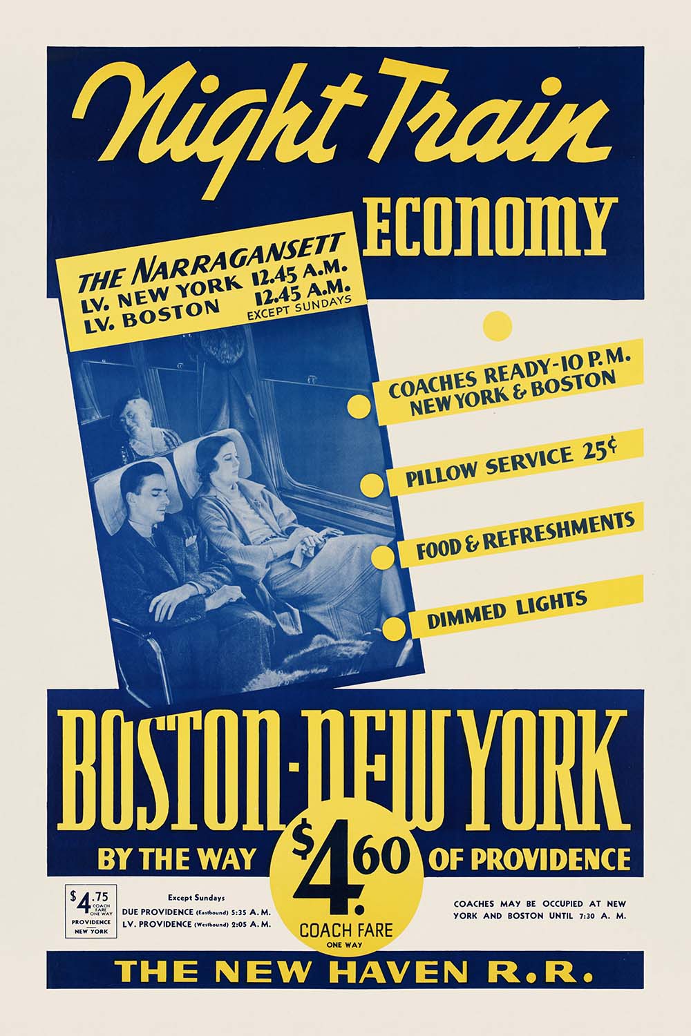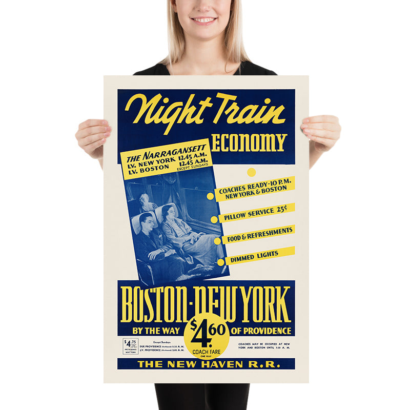 Boston Travel Poster: Night Train Economy, Boston – New York by way of Providence