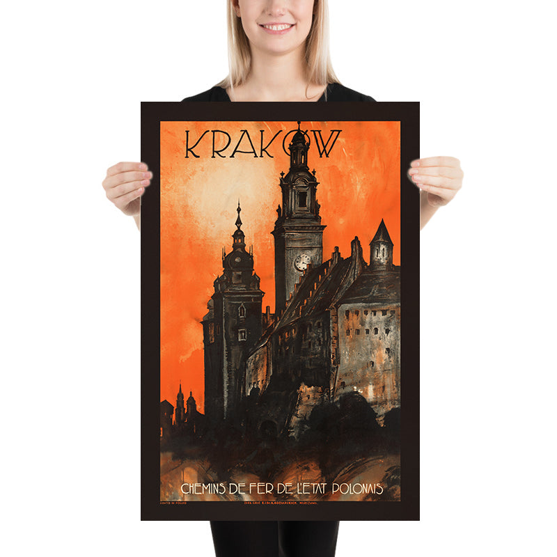 Why Krakow matters: One of Europe’s most atmospheric cities, Krakow enchants with its Gothic and Renaissance architecture, UNESCO-listed Old Town, and a rich cultural life that has drawn travelers for generations. The poster’s monumental silhouettes feel evocative of the city’s celebrated landmarks—its clustered spires and stately towers—capturing the sensation of arriving by train at twilight, when the skyline glows and the streets hum with possibility. It’s a timeless image of place, memory, and movement.
