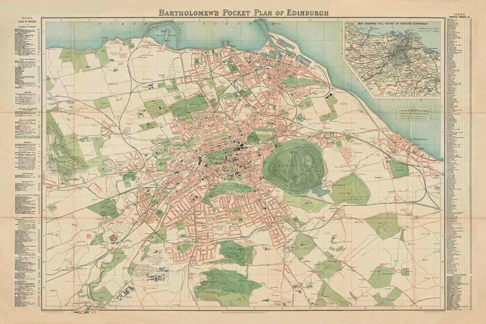 Et si tout cela n'était pas suffisant, il y a même une carte insérée montrant l'étendue complète d'Édimbourg, représentant la ville et ses banlieues jusqu'à environ 10 miles de distance.