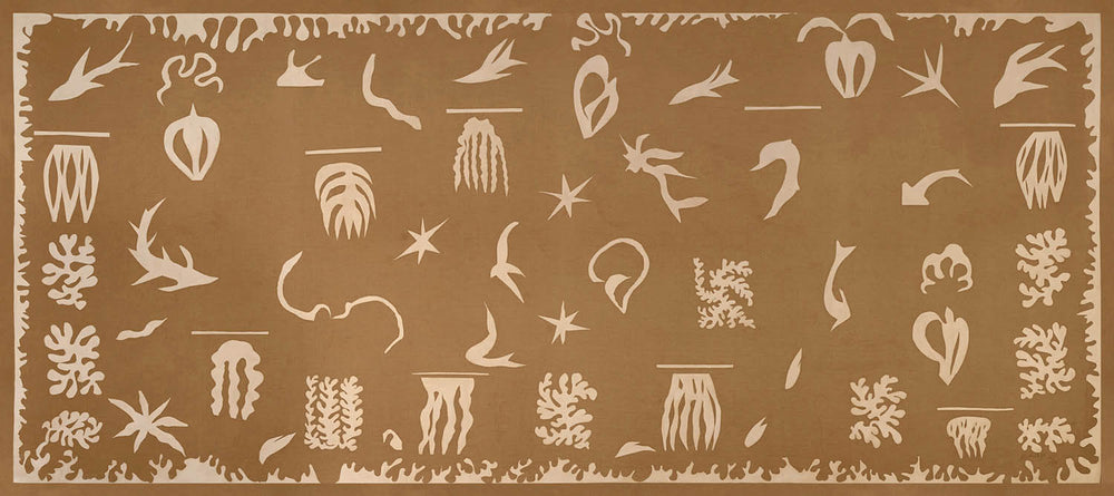 Henri Matisse était une figure emblématique de l'art moderne, et son travail sur les découpages, comme dans "Océanie, la mer", a marqué une période innovante de sa carrière. Connu pour son rôle dans le développement du fauvisme, Matisse a continuellement repoussé les limites de la peinture traditionnelle. "Océanie, la mer" en est un exemple avec ses tons terreux de brun et de beige, créant un sentiment de calme et de continuité semblable aux vagues qui viennent s'échouer sur une mer sans fin.