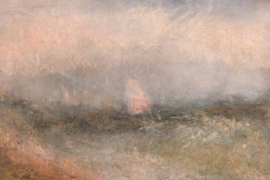 Turner est renommé pour son utilisation audacieuse et dramatique de la couleur et de la lumière, créant souvent un sens d'abstraction au sein de ses paysages. "Off the Nore" présente une palette vibrante dominée par des violets, avec des accents frappants de rose et de vert, reflétant la qualité éthérée de la mer et du ciel se rencontrant à l'horizon. Cette œuvre, notable pour son rendu atmosphérique émouvant, offre un aperçu captivant de l'exploration par Turner des éléments naturels.