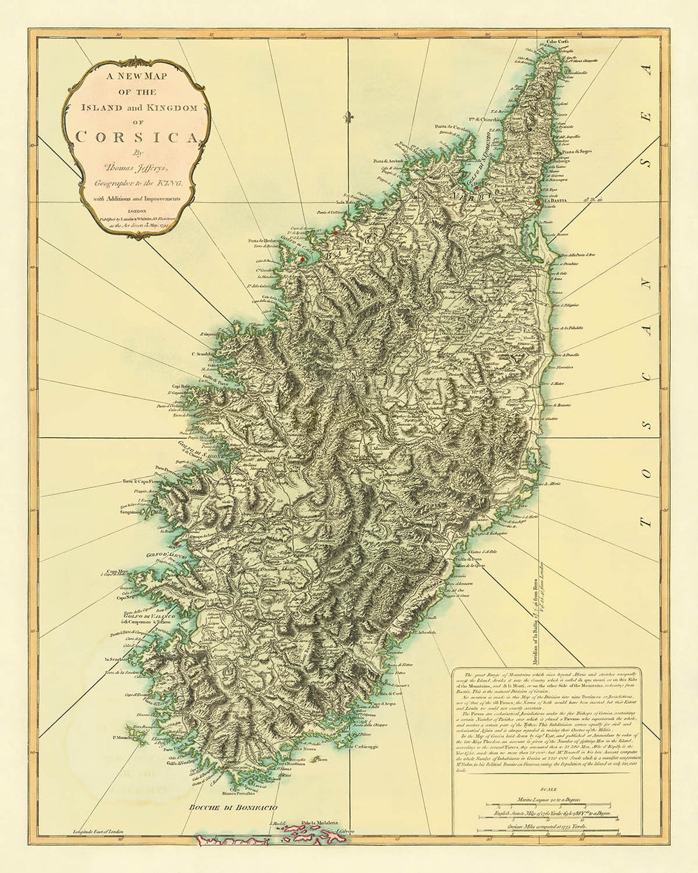 Les cartographes, Laurie & Whittle, étaient renommés pour leur engagement envers l'exactitude et le détail. Leur travail sur 'Une Nouvelle Carte de l'Île et du Royaume de Corse' témoigne de leur compétence et de leur dévouement. La carte reflète leur style signature, avec un accent sur la précision et une représentation complète du paysage physique et politique. La note textuelle dans le coin inférieur droit ajoute une couche supplémentaire de contexte, enrichissant encore la compréhension du spectateur de la carte et de son contexte historique.