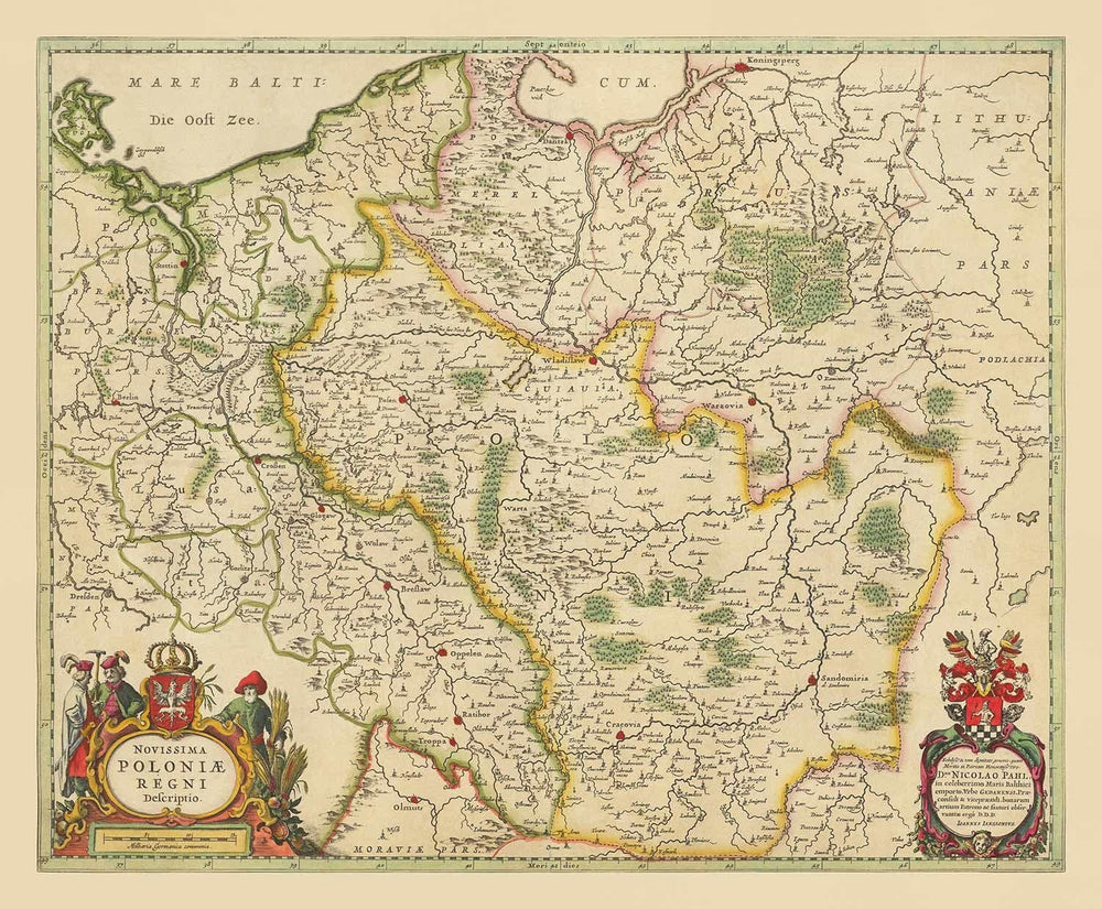 Ancienne carte de Pologne de Jan Jansson, 1640: Allemagne, Prusse, Lituanie, Silésie, Lusatia, Varsovie, Berlin, Cracovie