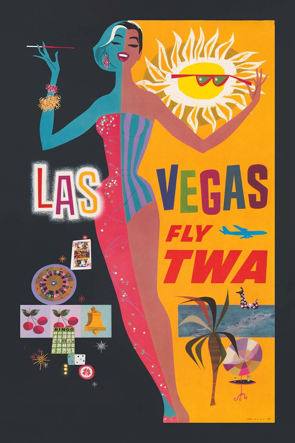 Las Vegas Travel Poster: Fly TWA by David Klein, 1962