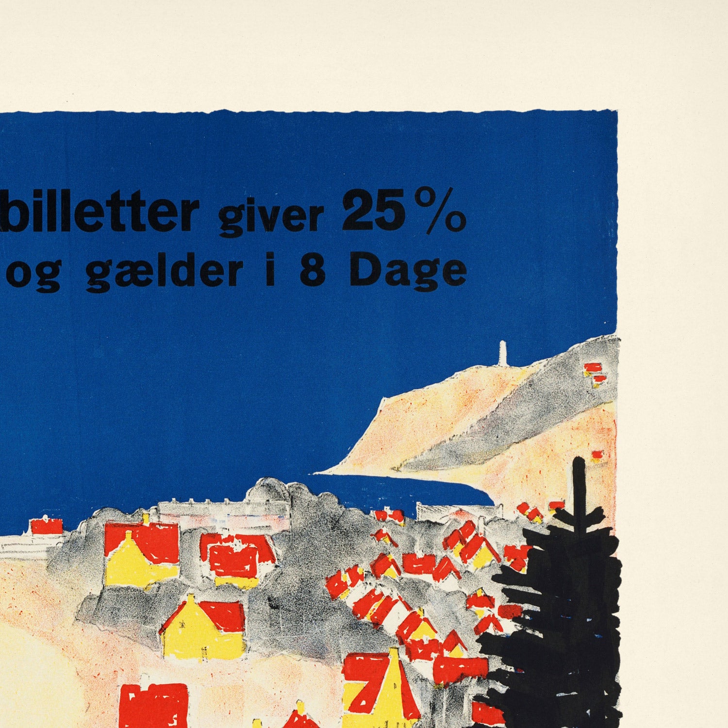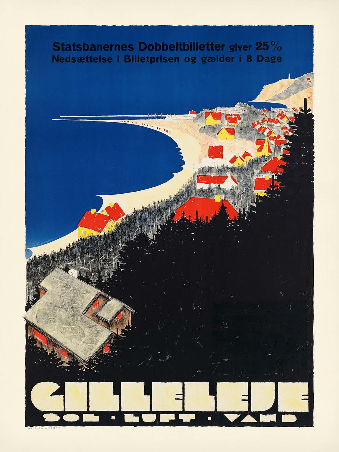 Though uncredited, the artist behind Gilleleje likely worked within the vibrant poster ateliers of Copenhagen, where commercial illustrators absorbed modernist ideas and translated them for travel and tourism. These designers fused clarity with charm, distilling a place to its essential shapes and rhythms. Their work brought the Danish coast to life for an audience eager for weekend escapes by rail, bicycle, or coastal steamer.