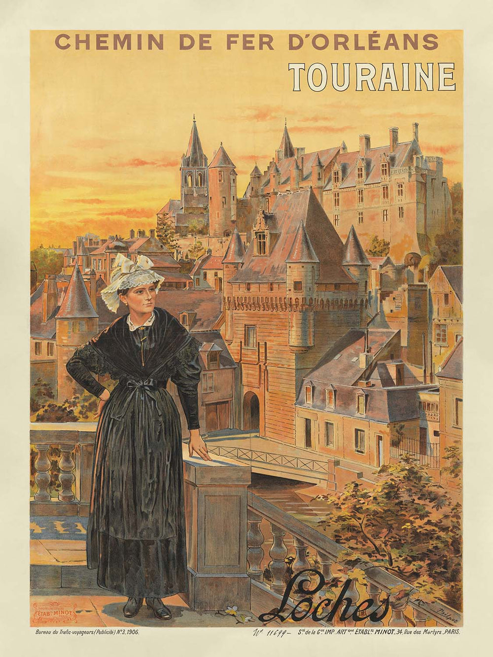 Loches Travel Poster: Chemin de Fer d’Orléans by Etablissements Minot, 1906