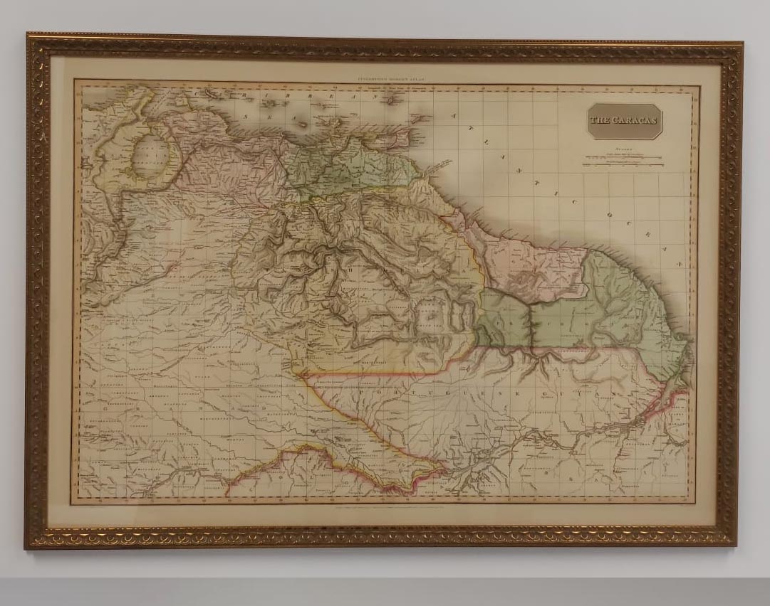Cities and routes are inscribed with the certainty of Pinkerton’s hand. Caracas anchors Venezuela’s interior network; Maracaibo guards the western littoral; Valencia and Barquisimeto mark the corridors that knit uplands to coast. In Colombia, Bogotá’s plateau authority contrasts with Medellín’s basin and Cali’s passage toward the Pacific, while Manaus rises where dark waters meet, a gateway to the upper Amazon. The color-coded borders provide an immediate political reading, while the latitudinal and longitudinal indicators affirm the map’s scientific intent. As a whole, this composition distills early nineteenth-century understanding into a lucid, beautiful synthesis—an enduring reference for historians and a connoisseur’s piece for those who prize the union of art and intelligence.