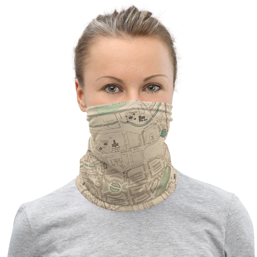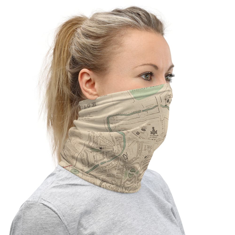 Maschera per il viso di Edimburgo / Gaiter per il collo / Snood con mappa colorata vintage di Edimburgo del 1853 di W.B. Clarke e pubblicata da George Cox