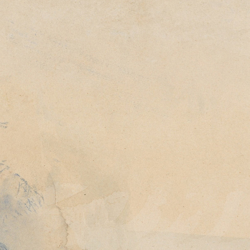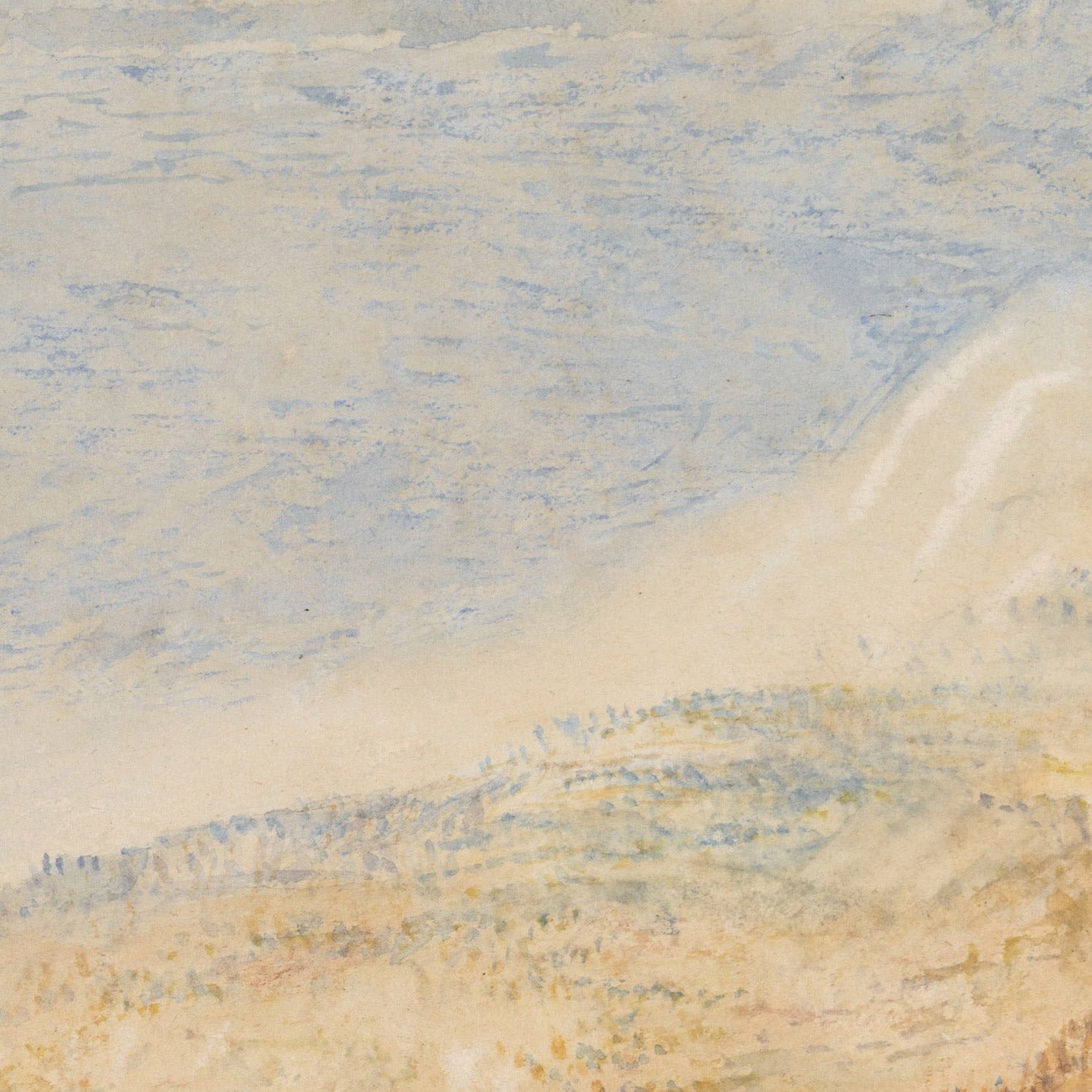 The subject here—Flüelen, at the southern reach of Lake Lucerne in the Swiss canton of Uri—held special resonance for Turner during his Alpine journeys. At a time when travelers and artists alike were enthralled by the drama of the Alps, he sought not a cartographer’s precision but the felt truth of place: the first warmth of sun on cool water, the vertiginous lift of slopes, the stillness broken by a few figures at the edge of an immense scene. This is Romanticism’s hallmark—the smallness of humankind before nature’s immensity—delivered with tenderness rather than terror.