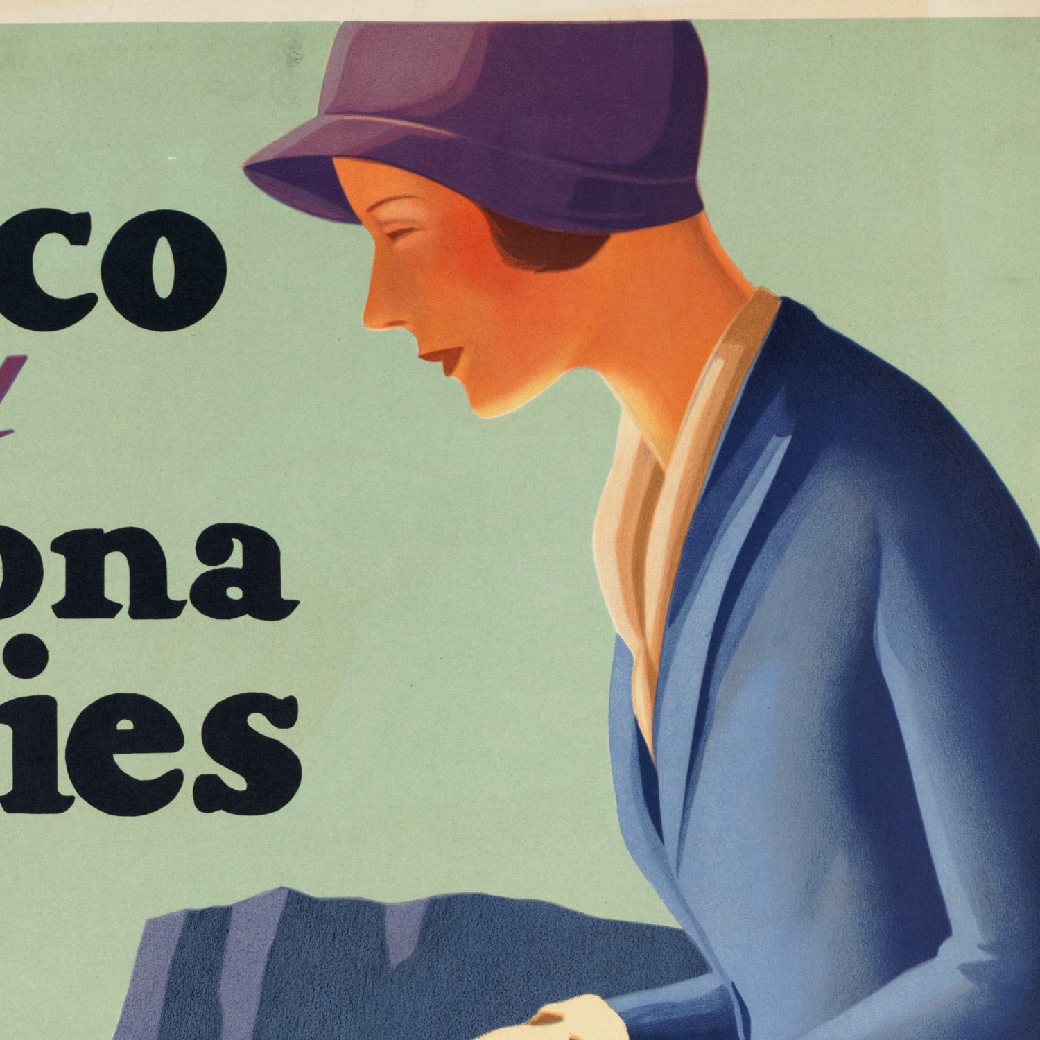 New Mexico and Arizona Rockies—Land of History and Mystery—by The Willmarths (1925) is a quintessential Art Deco travel poster from the American Southwest. Conceived in the interwar golden age of rail, it blends modernist design with the romance of discovery, inviting viewers to explore the dramatic Rockies and desert mesas by train. The composition pairs bold, geometric mountains with stylized figures and pottery, evoking the region’s deep cultural roots and the railroads’ promise of effortless adventure.