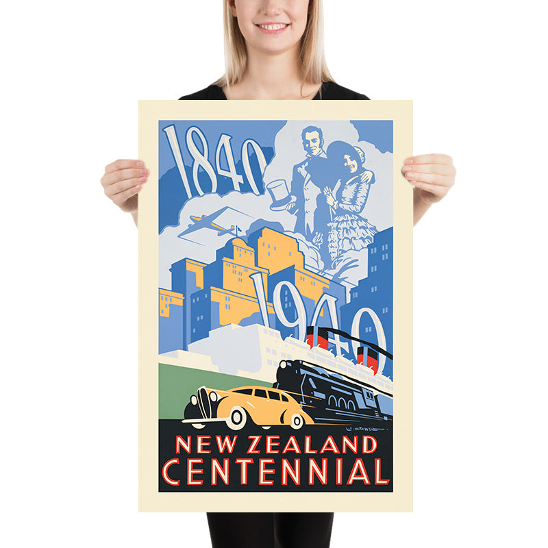 This 1940 design marks the national centenary and nods to the events of 1840, the foundational year associated with the Treaty of Waitangi. In a single, well-orchestrated scene, it layers people, landscape, and technology to tell a story of transformation. For collectors of New Zealand memorabilia, mid-century design enthusiasts, and anyone with roots or memories in Aotearoa, it is an instantly recognizable emblem of the era’s optimism and forward motion.