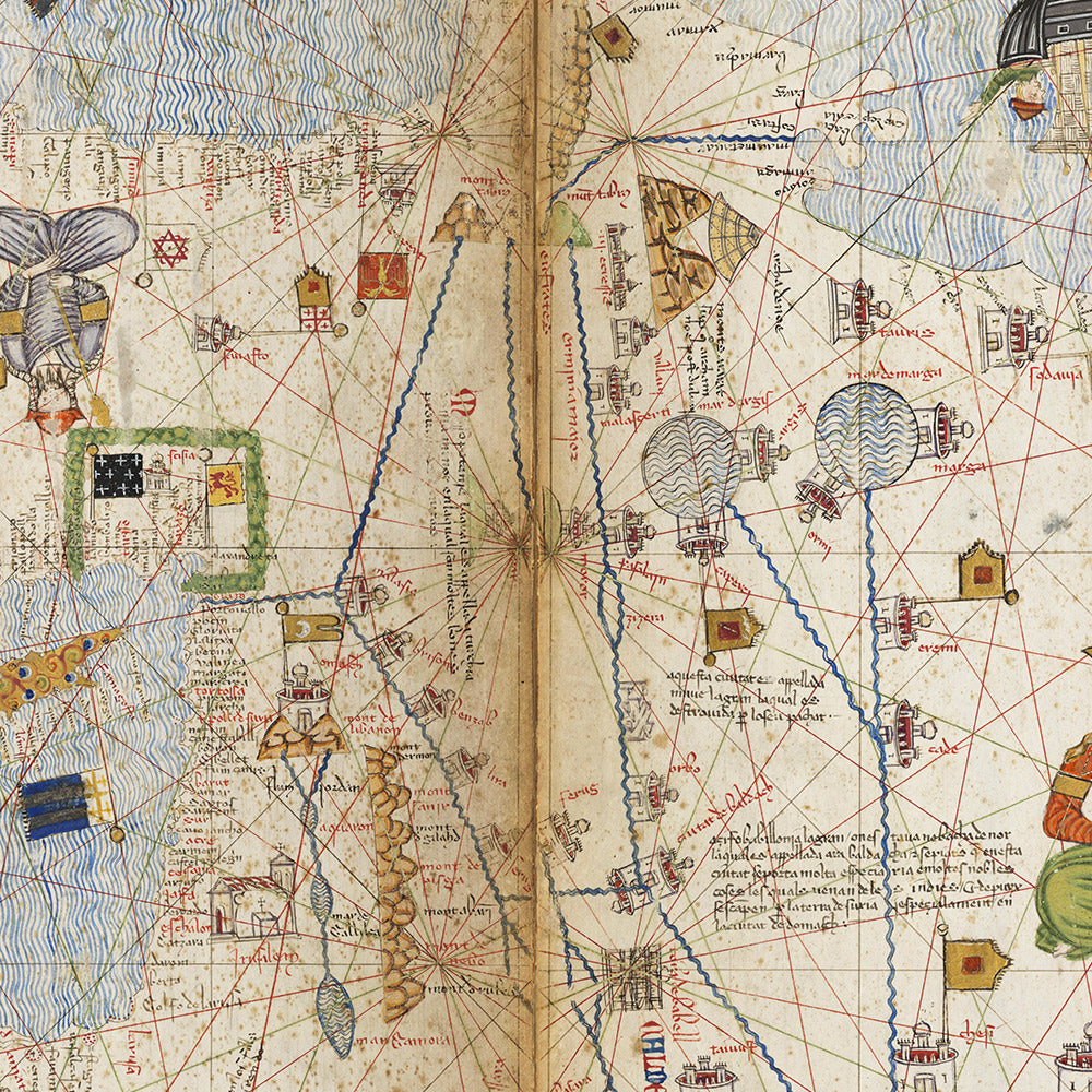 • Mapmaker: Cresques Abraham, a Jewish book illuminator associated with the Majorcan cartographic school