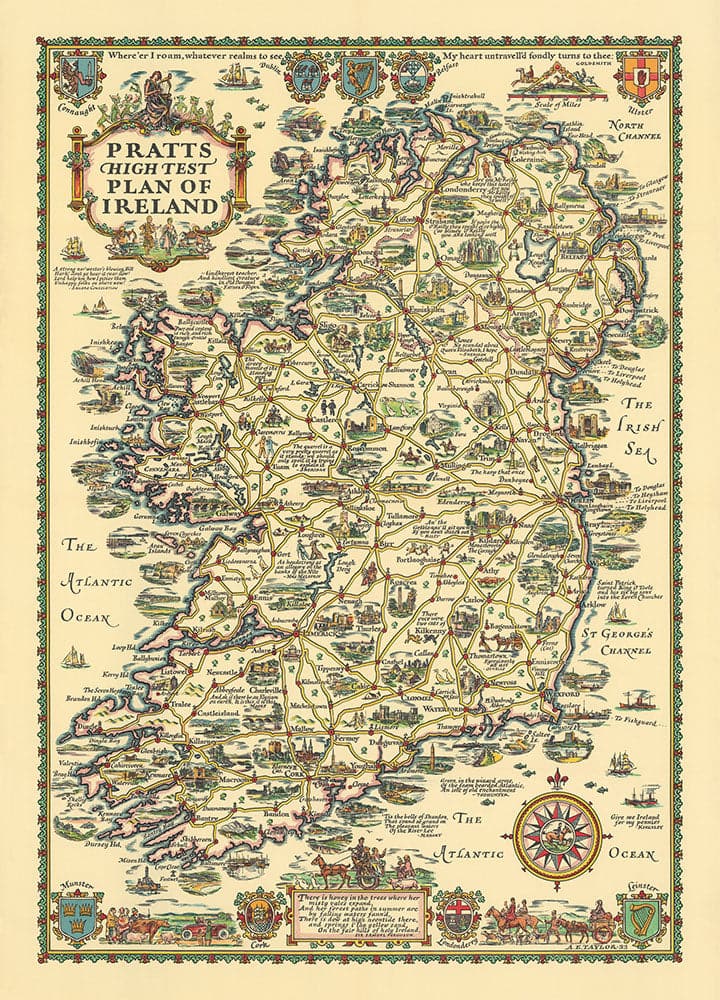 Taylor è stato incaricato di creare una serie di mappe del Regno Unito e dell'Irlanda per incoraggiare le persone a viaggiare per il paese con le loro nuove carrozze motorizzate (alias automobili) - che, ovviamente, avrebbero consumato olio Esso!